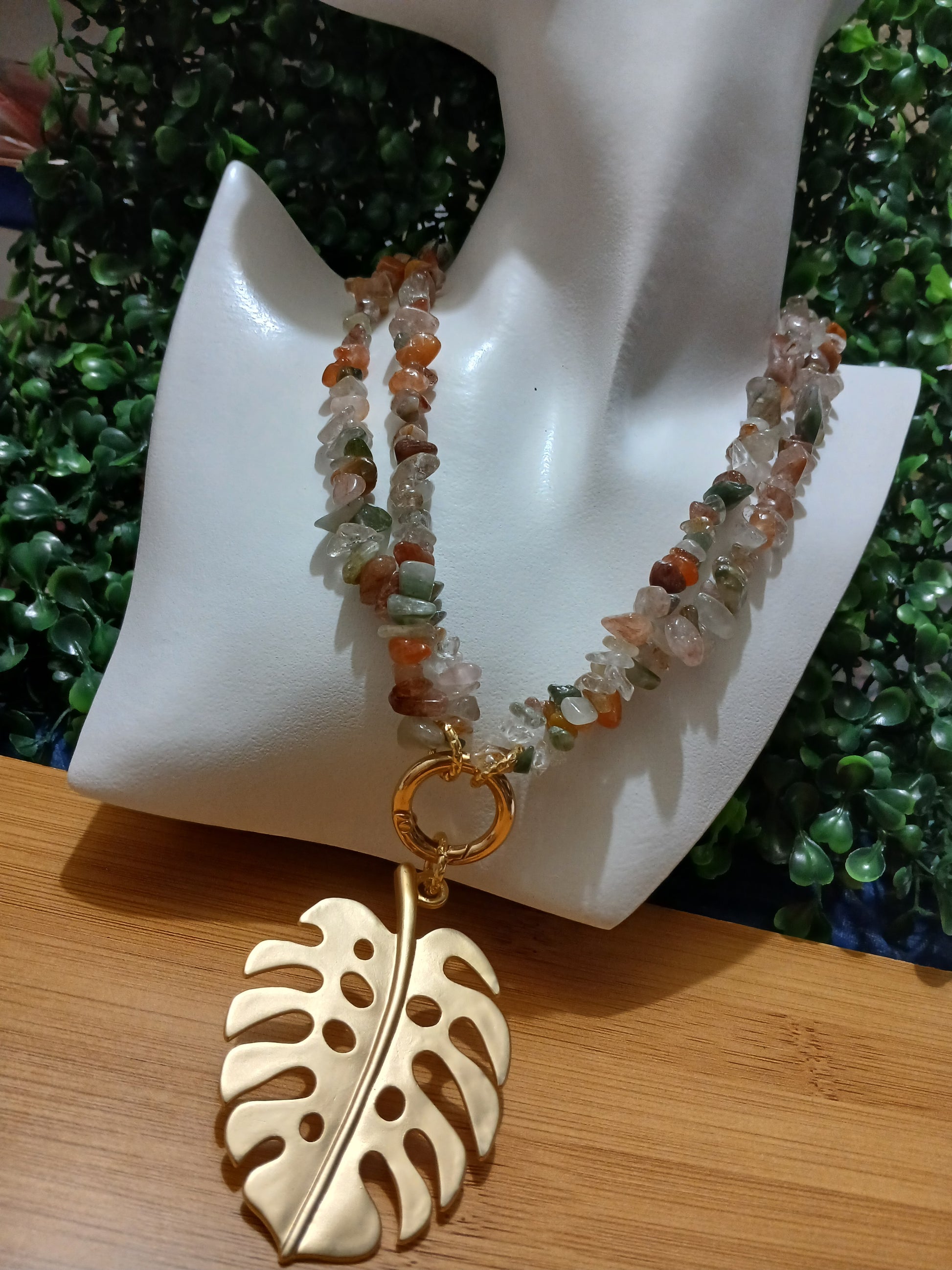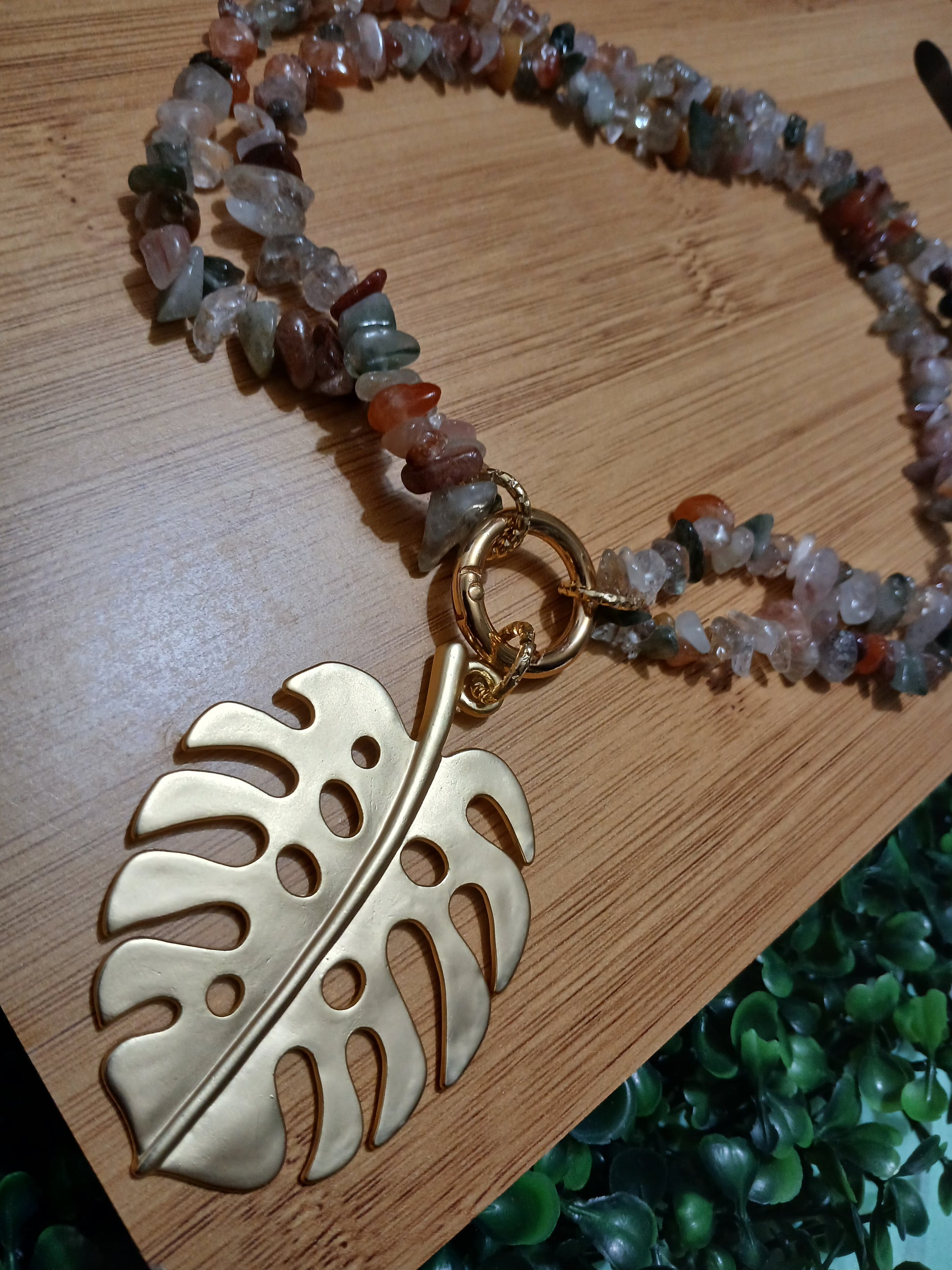 Dije de hoja en Enchape no cambia de color.