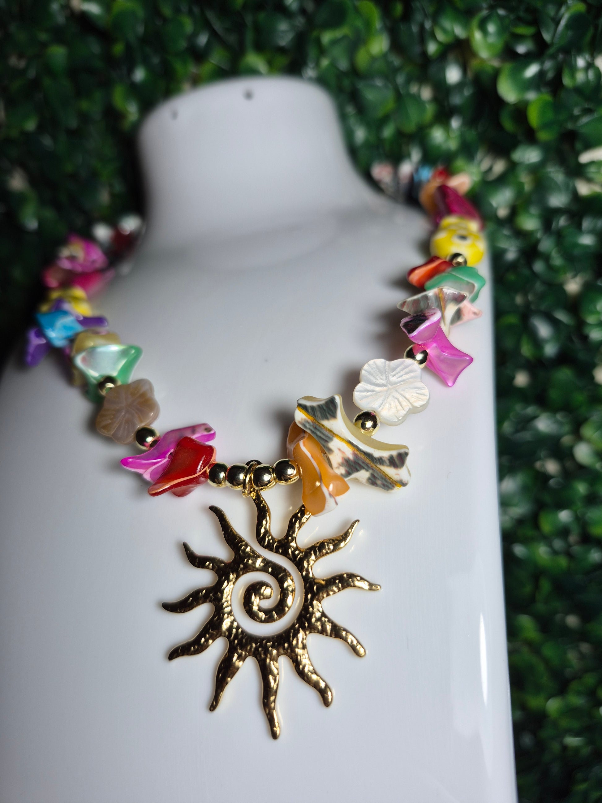Dije del sol es en Stainless steel y terminaciones en Stainless Steel.
